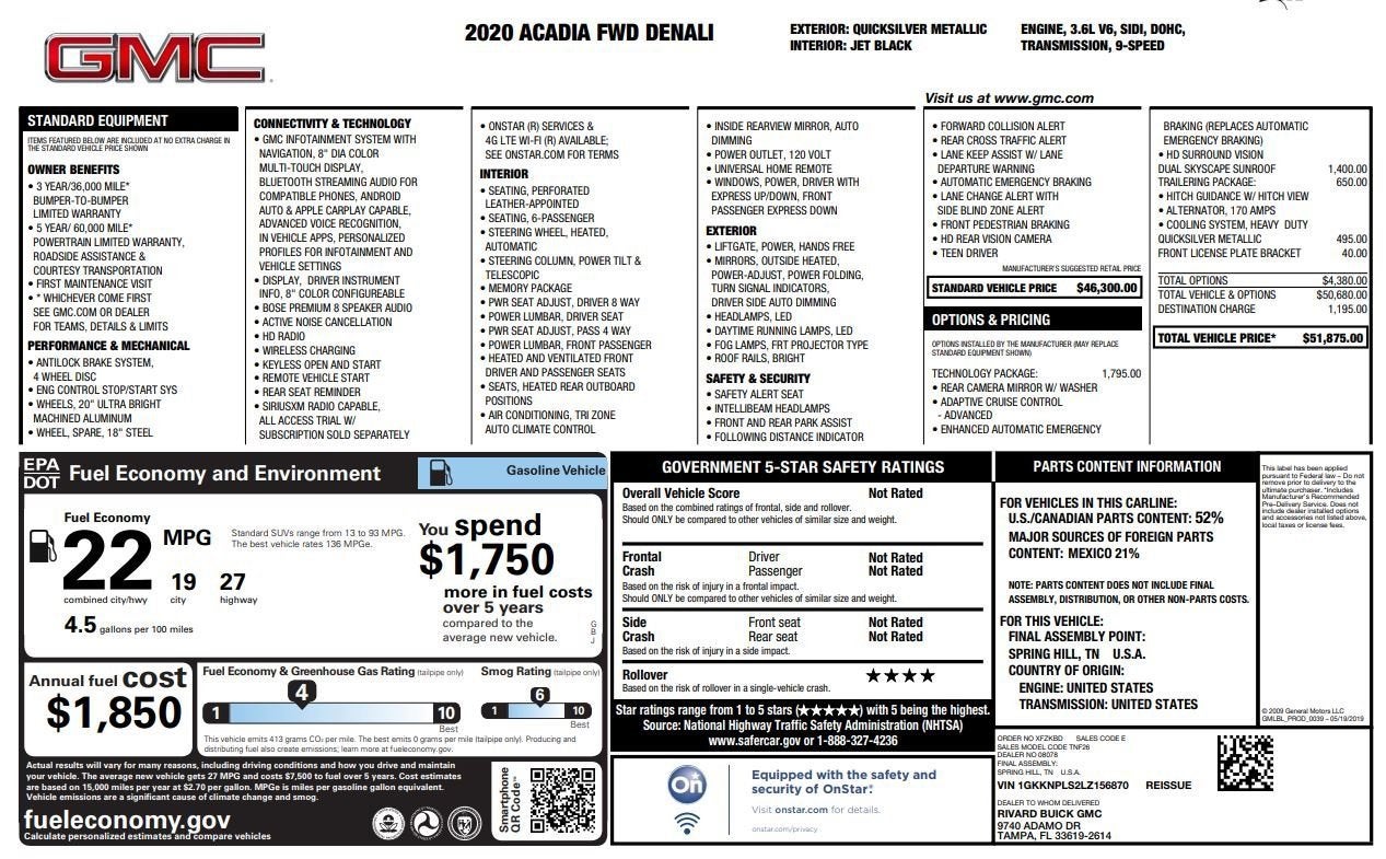 This Quicksilver Metallic 2020 GMC Acadia Denali FWD is well equipped and includes these features and benefits: