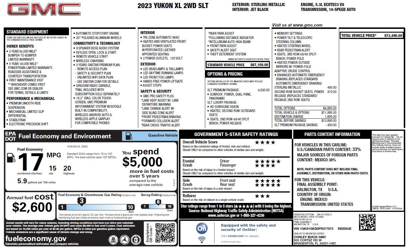 **Prices are PLUS tax, tag, title fee, $995 Pre-Delivery Service Fee and $279 Electronic Tag Registration Service Fee, and does not include dealer installed options if applicable. Conley Buick GMC is a General Motors DEALER of THE YEAR Award Recipient. We have been serving the Gulf Coast and surrounding Florida areas for over 55 years. We offer a LIFETIME LIMITED POWERTRAIN WARRANTY on all New Vehicles (Excluding Diesel Engines and vehicles covered by a Commercial Insurance Policy or for commercial use) Contact our internet department for complete details.