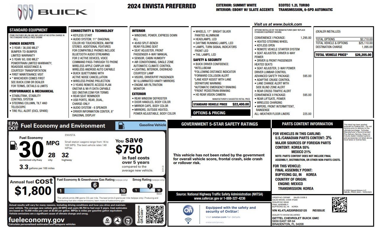 With 34,344 miles, this 2024 Buick Envista Preferred is practically new and ready to combine efficiency, comfort, and safety for your next adventure.