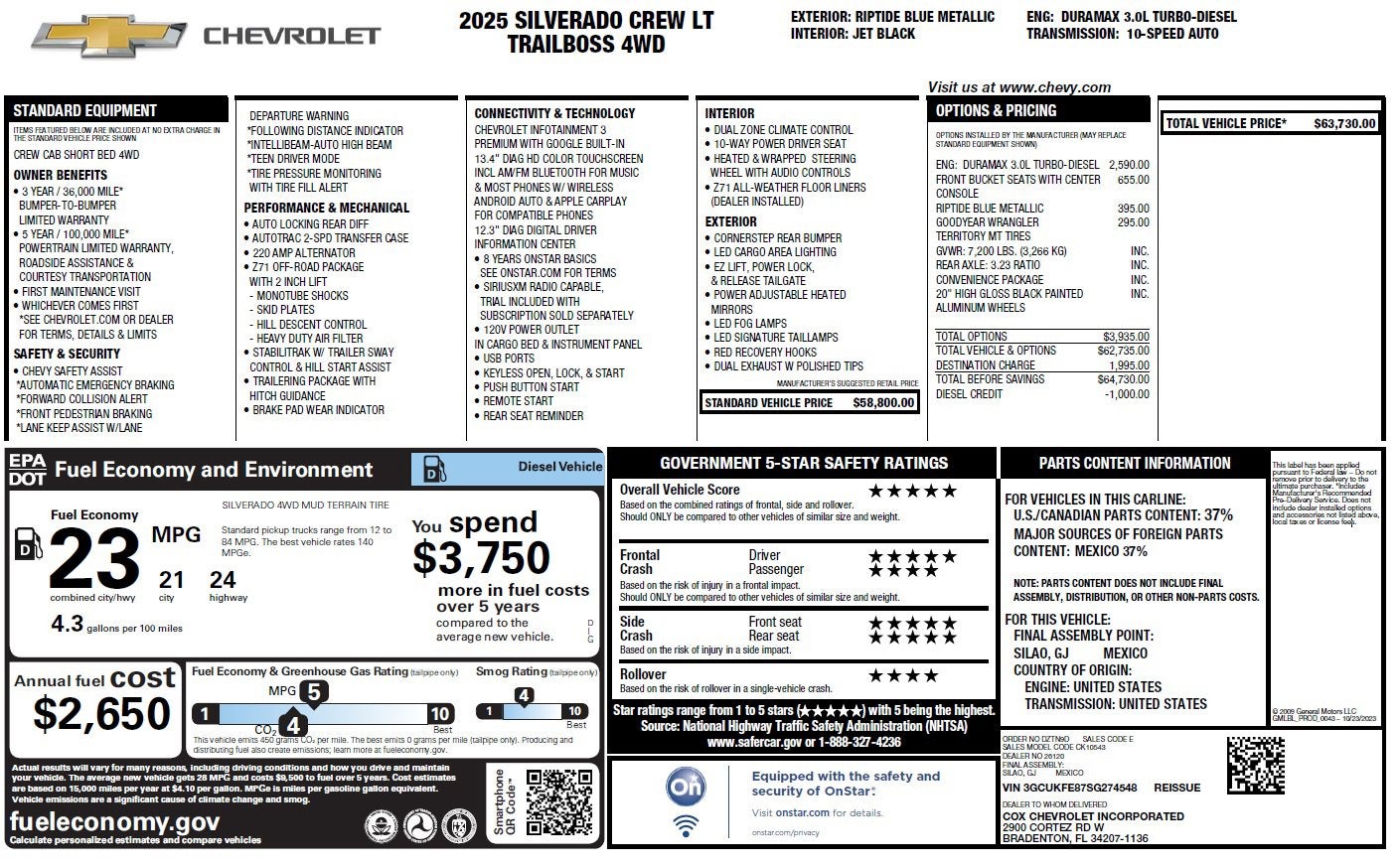 - Retail Price $55,602