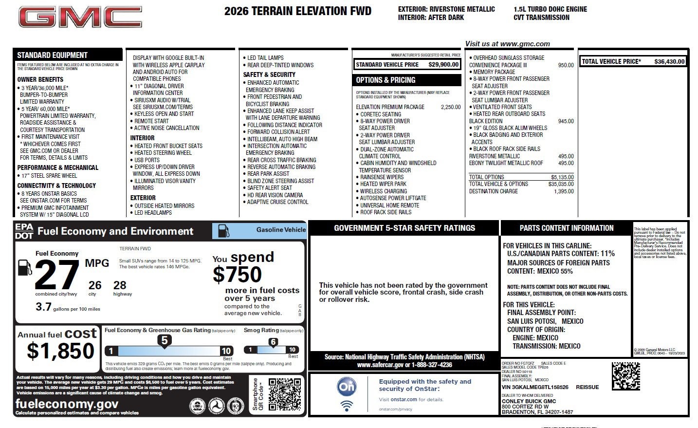 Stand out in this 2026 GMC Terrain Elevation, now available at Conley Buick GMC in Bradenton, Florida. With under 3,000 miles, this Terrain offers a nearly-new driving experience with bold Elevation styling, modern technology, and impressive fuel efficiency.